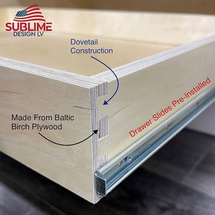 Amazon Com Sublime Design Pull Out Tray Baltic Birch Drawer For Kitchen Cabinets Slide Out Shelves Roll Out Cabinet Organizer 33 Wide Home Kitchen